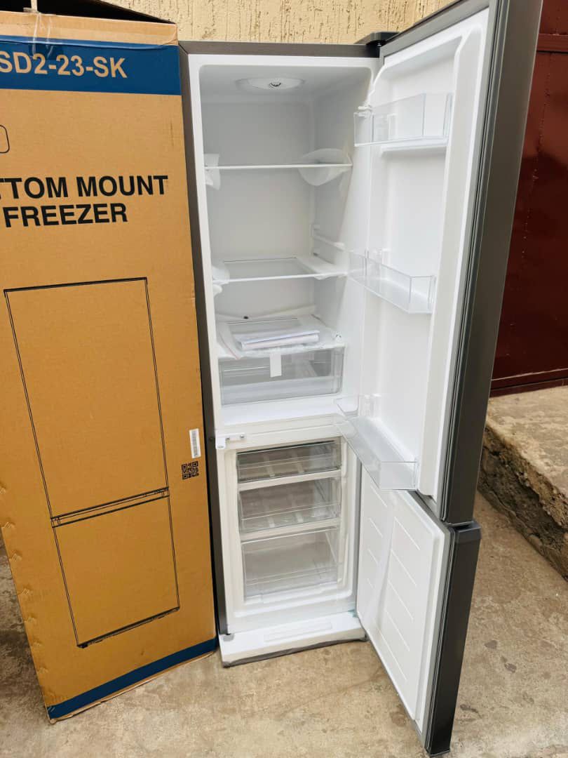 The Nasco NASD2-23-SK is a 170-liter double door fridge with a bottom freezer design. It features a 120L fridge compartment and a 50L freezer, offering efficient storage for your food and drinks. With fast cooling, energy-saving performance, and a sleek modern look, it’s perfect for small to medium-sized homes.