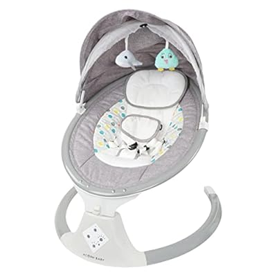 A baby swing with music player is a soothing seat that gently rocks or swings to calm babies, while playing built-in lullabies or nature sounds. It often includes adjustable swing speeds, safety harness, and plush seating for comfort. Ideal for napping, relaxing, or entertainment at home.