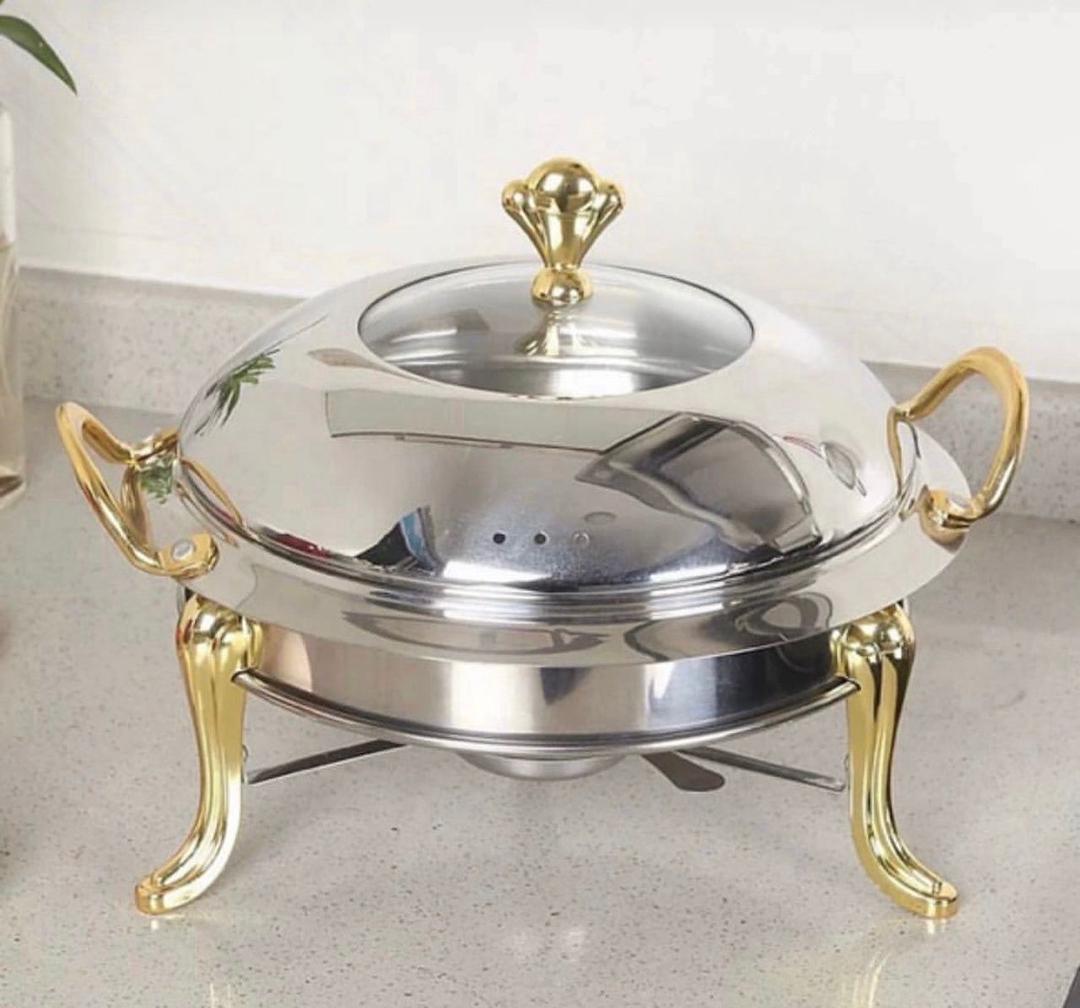 This is a stainless steel food warmer used to keep meals hot during events or buffets. It’s perfect for serving food in style while maintaining the right temperature.