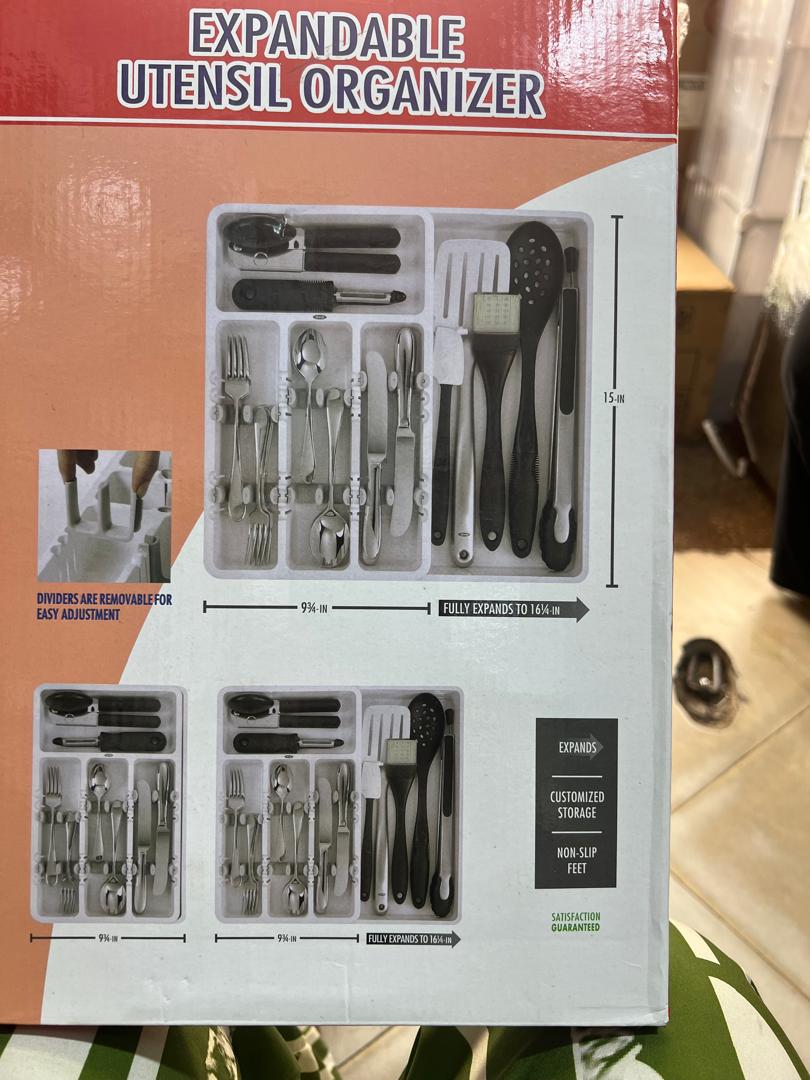 Expandable utensil organizer—adjustable to fit any drawer. Keeps your kitchen tools neat, easy to access, and clutter-free. Durable and easy to clean.