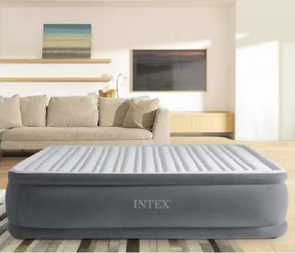 This Intex air bed offers premium comfort and convenience, ideal for guests, travel, or temporary sleeping needs. Features a built-in pump for quick inflation and deflation, a flocked top surface for extra softness, and durable material for long-lasting use. Compact and easy to store when not in use. Perfect for home or on-the-go.