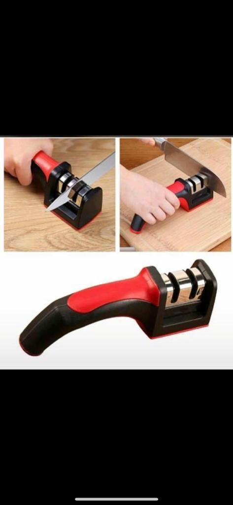 HIGH QUALITY: The multifunctional Knife sharpener is made of stainless steel and is suitable for all kinds of knives. Professional Kni fe sharpener, sturdy and durable, non-slip handle, make your knives sharp in seconds. The grinding wheel is made of tungsten steel, ceramic fine grinding, and ceramic fine grinding blades.