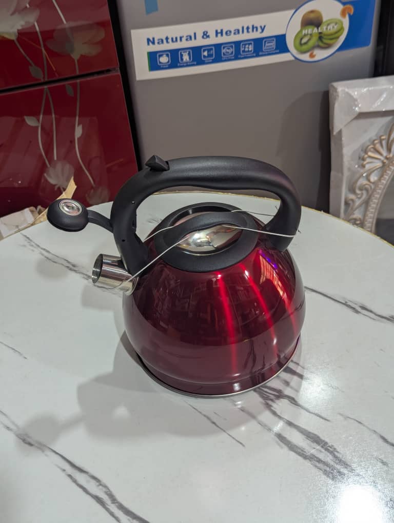 Whistle kettle – durable stainless steel with loud whistle to alert when water boils. Stylish and perfect for gas or induction stoves.